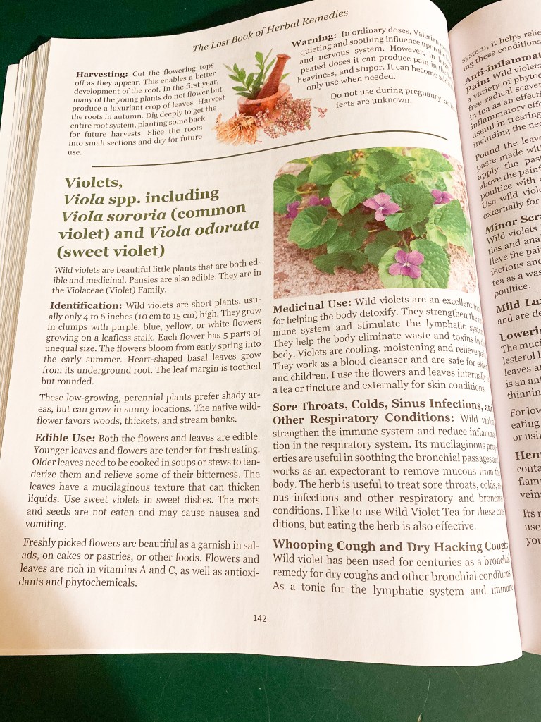 I am in no way claiming these are the cures to all your ailments, if you are into any type of herbal remedies and have no allergies to sweet violets that grow in your yard, you may give it a go!