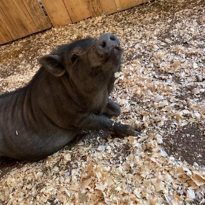 We currently have two potbelly pigs on our farm. They are a breeding pair. Hippie is our female and has had two litters of piglets with our male, Hootie. He is just a little black piglet weighing in at about 80 lbs. and has a very sweet demeanor.